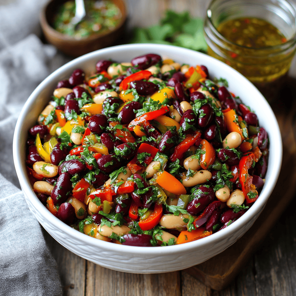 Easy Summer Bean Salad with Canned Beans & Tangy Vinegar Dressing – Perfect for Potlucks & Meal Prep
