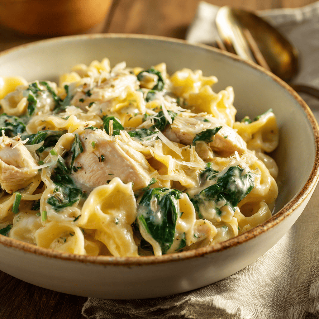 Creamy Garlic Chicken Thigh Pasta with Spinach – Easy One-Pan Italian-Inspired Dinner