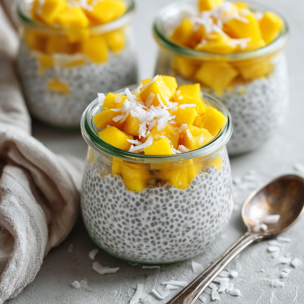 Tropical Mango Chia Pudding with Coconut Milk & Coconut Water – Healthy Summer Dessert for Kids & Families